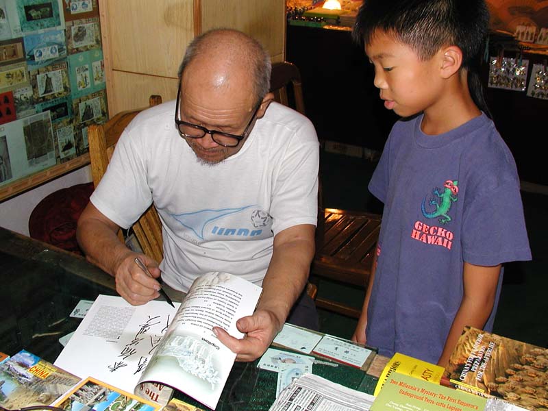 Lorraine, Michael, Pat, and Josephine in front of Hong Kong Skyline A group photo in front of the Hall Village Temple Grandpa and Dai Bok in front of the house where Dai Bok was born Michael looks just like one of the village kids Barney and Karma in front of the giant Gun Jum The view of the village rooftops from the balcony of my Great Uncle. Foo Loy’s granddaughter, Michael, and Stephanie at the village temple. Monsoon hits our lunch Michael likes his snake The new Pearl River waterfront. This is a concert hall The old and new Guilin. Back in 1985, the entire city looked like the old half of this picture. Here are the Rockefellers, buying a few trinkets Here’s dinner, and yes, we did eat this. Pat, Josephine, and Michael on the Li River Group shot on the Li Li River Scenery Michael gets an autograph from the discoverer Terracotta Soldiers Barn and Karm at the hot springs Pat and Lorraine, with Maggie Trond is intensely fashionable Is this really worth it for a little KFC? Beijing traffic Steph and Bern get a manicure Beijing Street Scene Lorraine and Grandpa trying to keep cool Looks just like Disneyland Are we having fun yet? We scale the Wall Michael and Stephanie Rub the Longevity Turtle’s nose for a 130 year life What RMB$2Billion will get you The center of the Universe sure is crowded Waiting at the Beijing Airport Michael is getting to be a real pro at immigration Auntie Sum with Lorraine and me Michael picks dragon eyes Circus act at Chime-long night zoo Barnaby and Karma at the Singing Spring grounds Mary, Charlie, Edy, Alex, Joanna, and Doug Back in Hong Kong Some back home food, and shopping on our last day